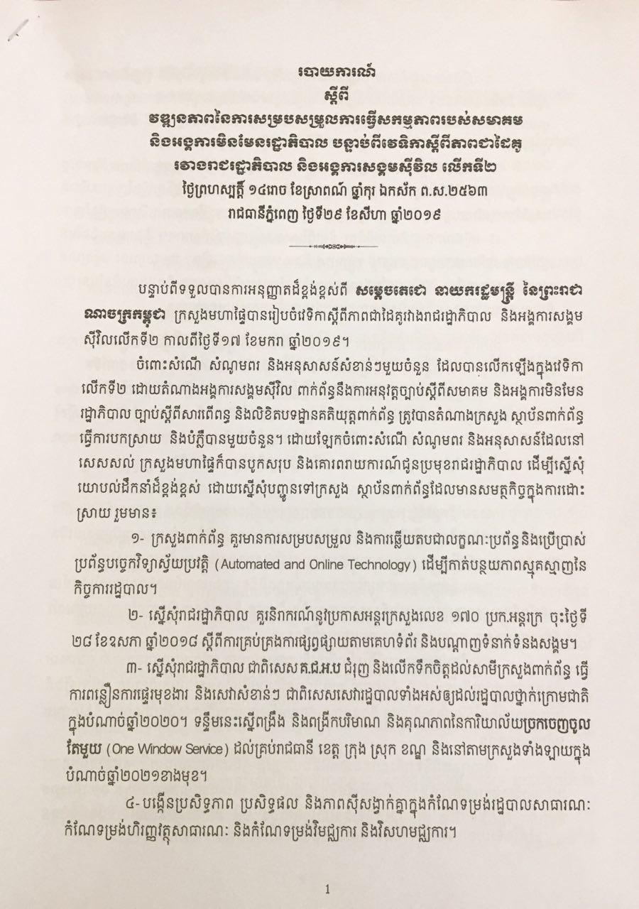 CCC would like to share you the progress report of the government responding to the twelve key asks proposed by CSOs since the 2nd Partnership Forum between the Government and CSOs on 17 Jan 2019.